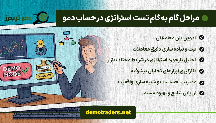 تست استراتژی معاملاتی در حساب دمو برای موفقیت هر معامله گر الزامی است. پایبندی به پلن معاملاتی، ثبت کامل داده ها، بررسی استراتژی در سناریوهای مختلف بازار، استفاده از ابزارهای تحلیلی و ارزیابی منطقی نتایج سبب می شود که معامله گر با اعتماد به نفس و شناخت کافی پا به دنیای معاملات واقعی بگذارد و ریسک شکست را به حداقل برساند.
